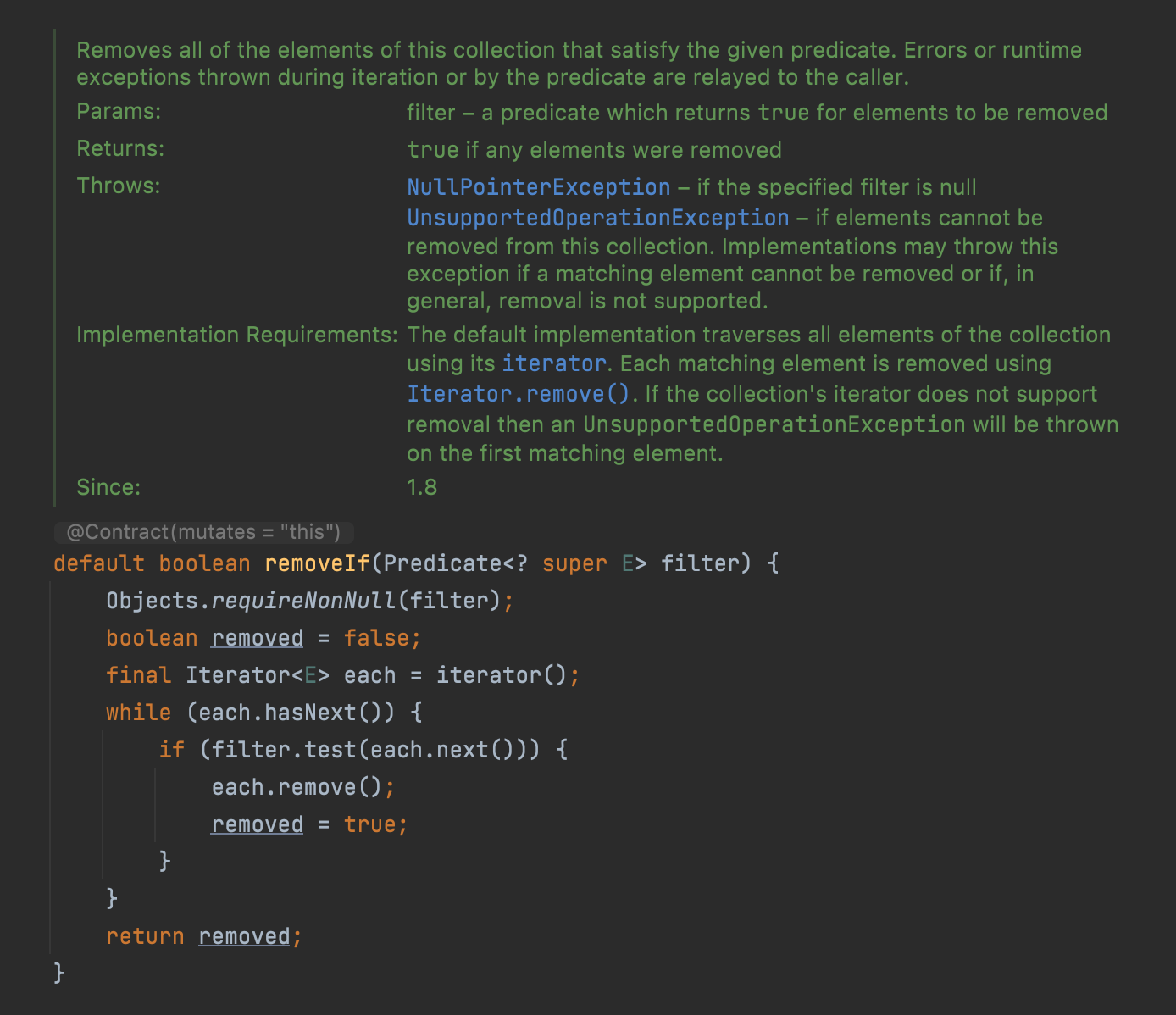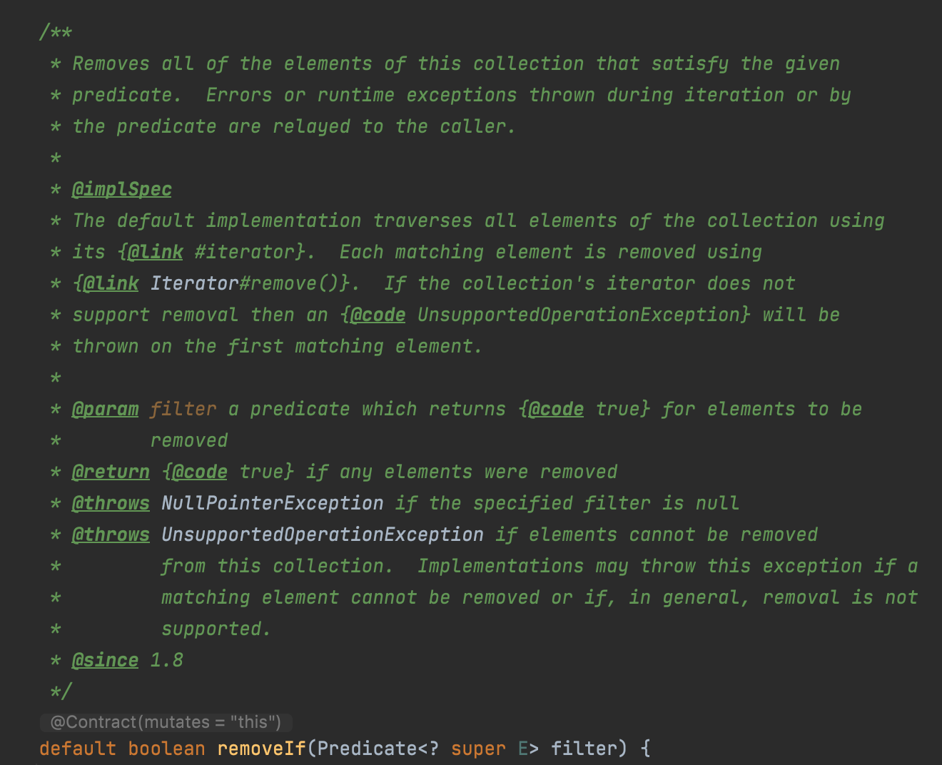따라서 default 메서드를 추가할 때는 항상 @implSpec을 활용한 문서화를 해야 한다.