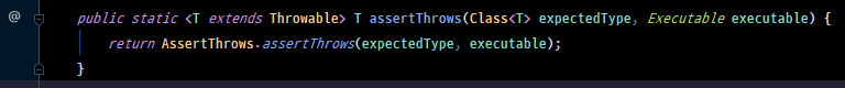 - assertThrows(expectedType, executable)