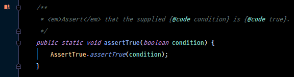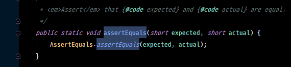 JUnit Jupiter는 다양한 Assertion 메서드가 포함되어있다. Assertion 클래스를 살펴보면 메서드는 모두 static 메서드이고, 오버로딩을 통해 다양한 타입을 지원하고 있다.